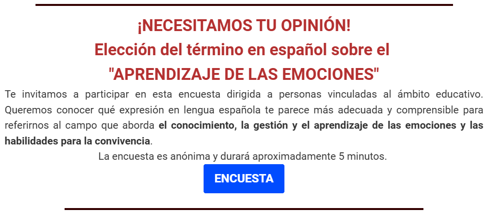 ¡NECESITAMOS TU OPINIÓN! – “APRENDIZAJE DE LAS EMOCIONES”